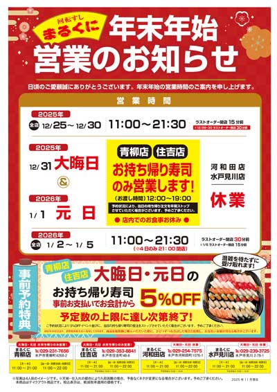 ぜひ、年末年始はまるくにのお寿司でお過ごしください!